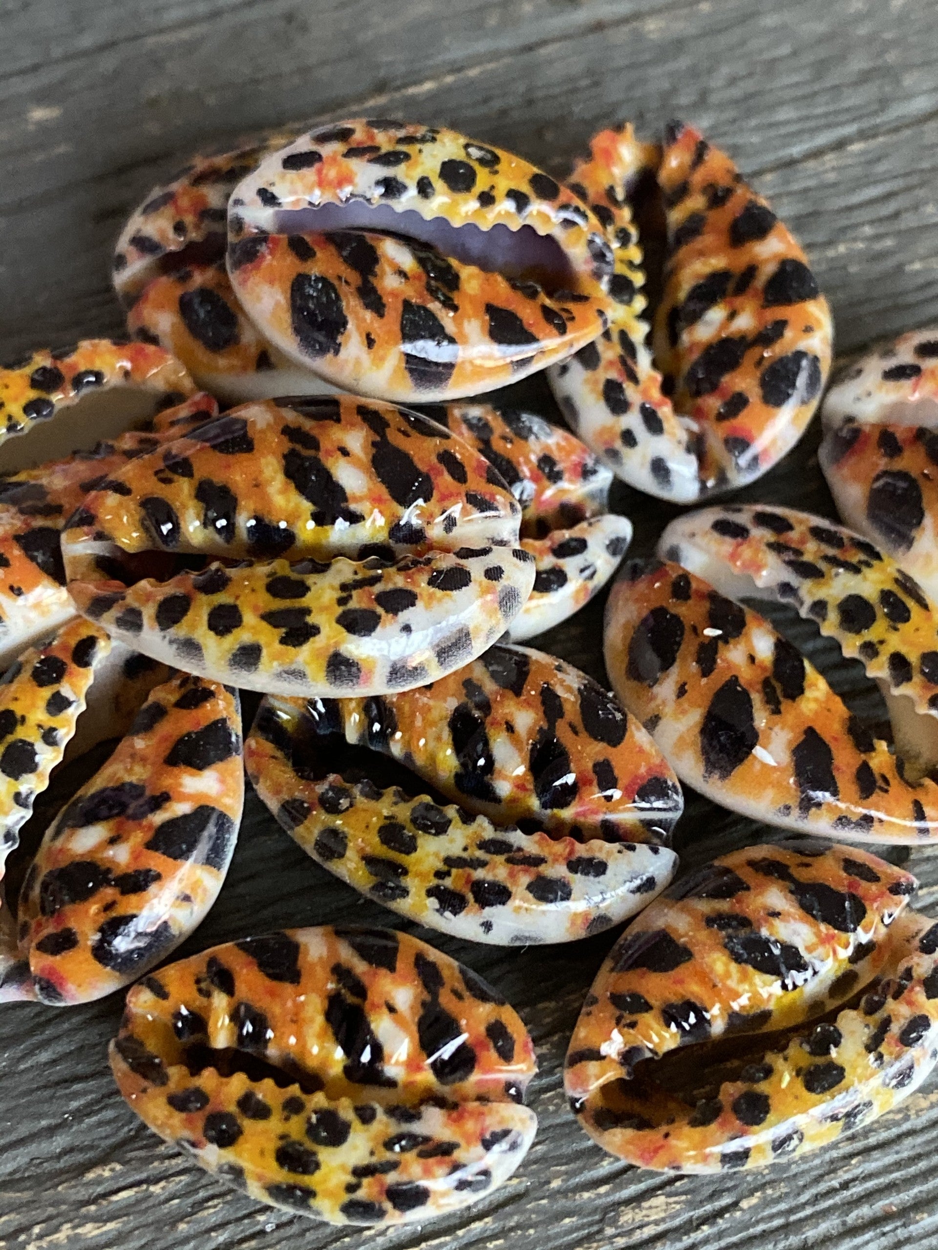 Kauri schelp leopard . Opengewerkt.