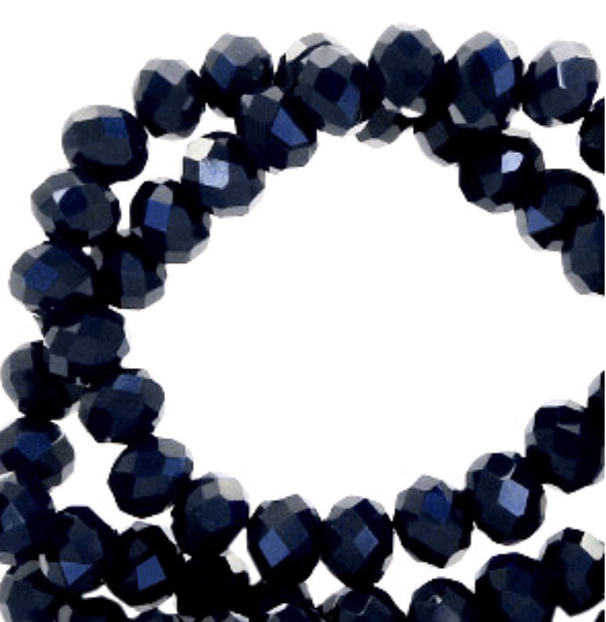 Facet ( glas ) kralen disc 6x4mm Dark blue - pearl shine coating.