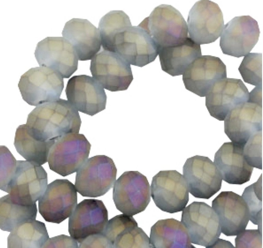 Facet kralen disc 6x4mm matt Greige topaz - half diamond coating.