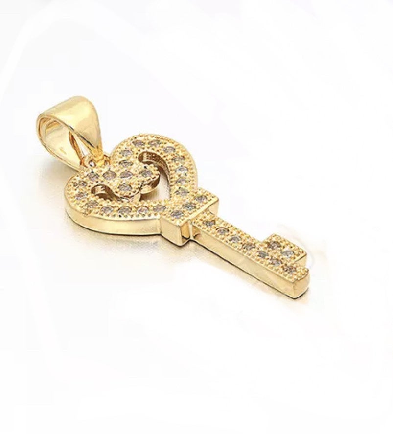 Bedel zirkonia sleutel goud. 11x22 mm. Nikkelvrij