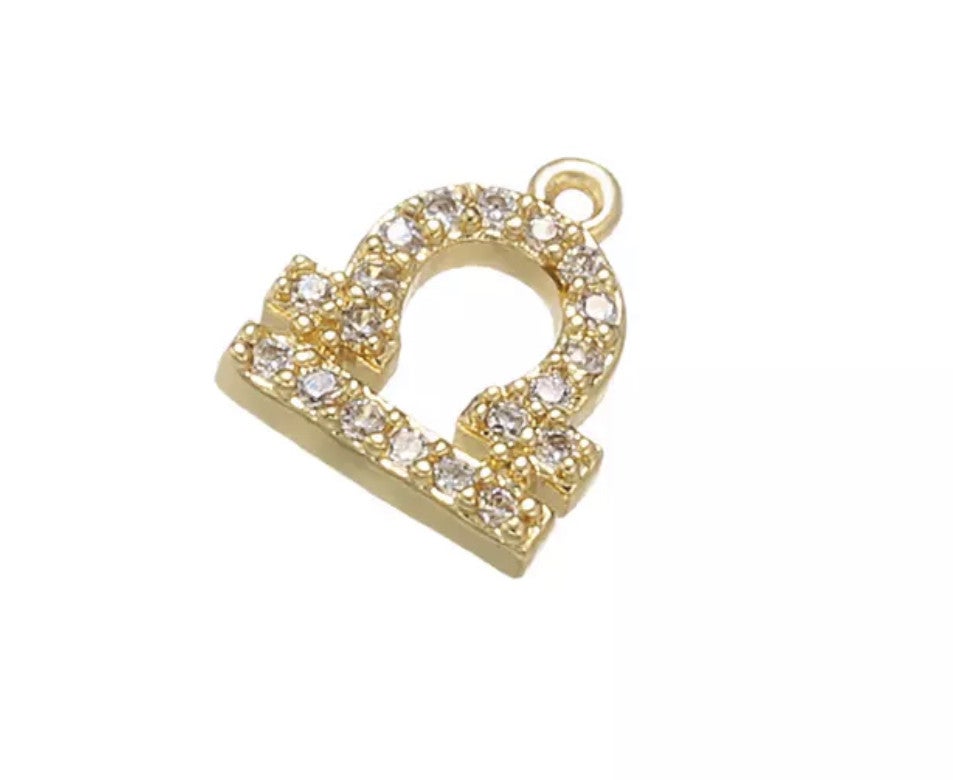 Zirkonia bedel metaal goud. Nikkelvrij. Sterrenbeeld weegschaal. 8x9mm