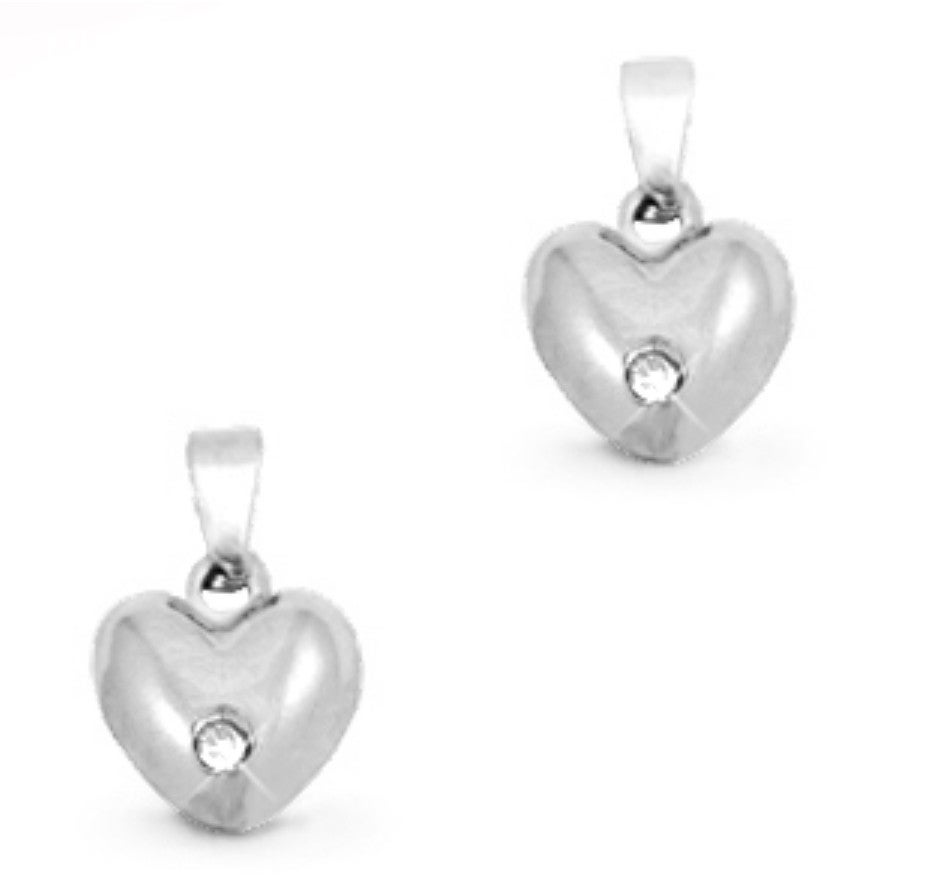 Stainless steel bedel hart bol met steentje Zilver