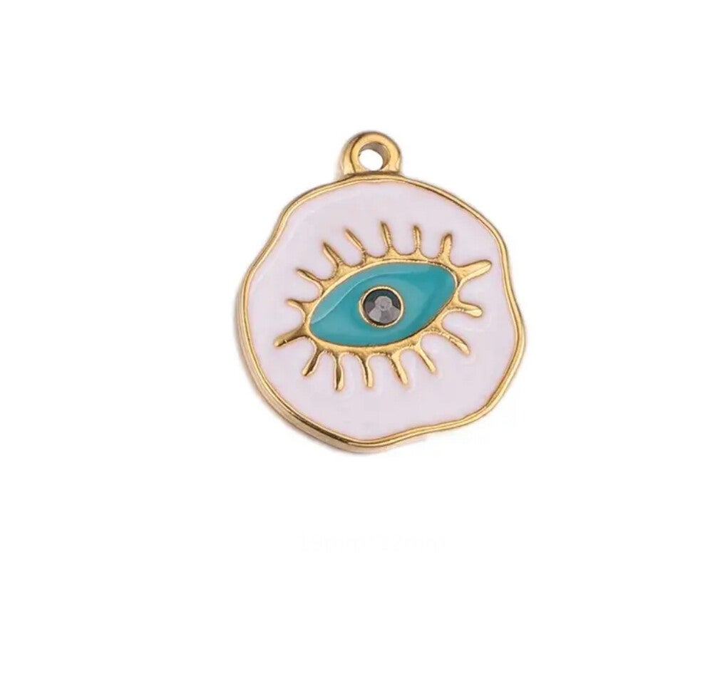 Stainless steel bedel evil eye White - blue