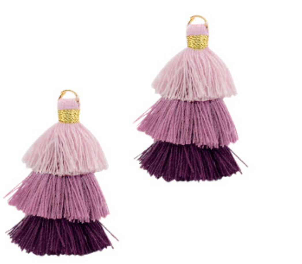 Kwastje 3 layer 3,2cm Gold - multicolor purple