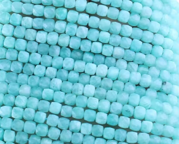 Natuursteen kralen facet cubes 4mm amazoniet helder blauw