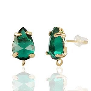 OORSTEKERS VAN CRYSTAL GLASS MET OOGJE GREEN-GOLD OVAAL