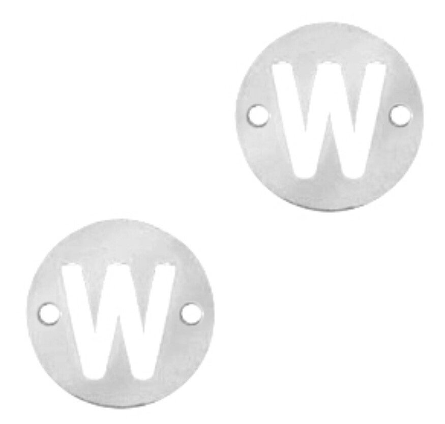 Stainless steel initial coin 10mm W zilver