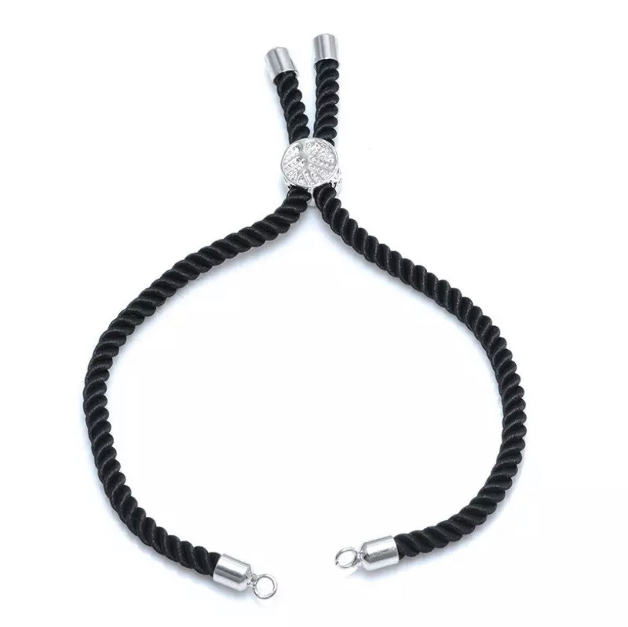 Armbandje voor tussenstuk, verstelbaar Zwart - Zilver.