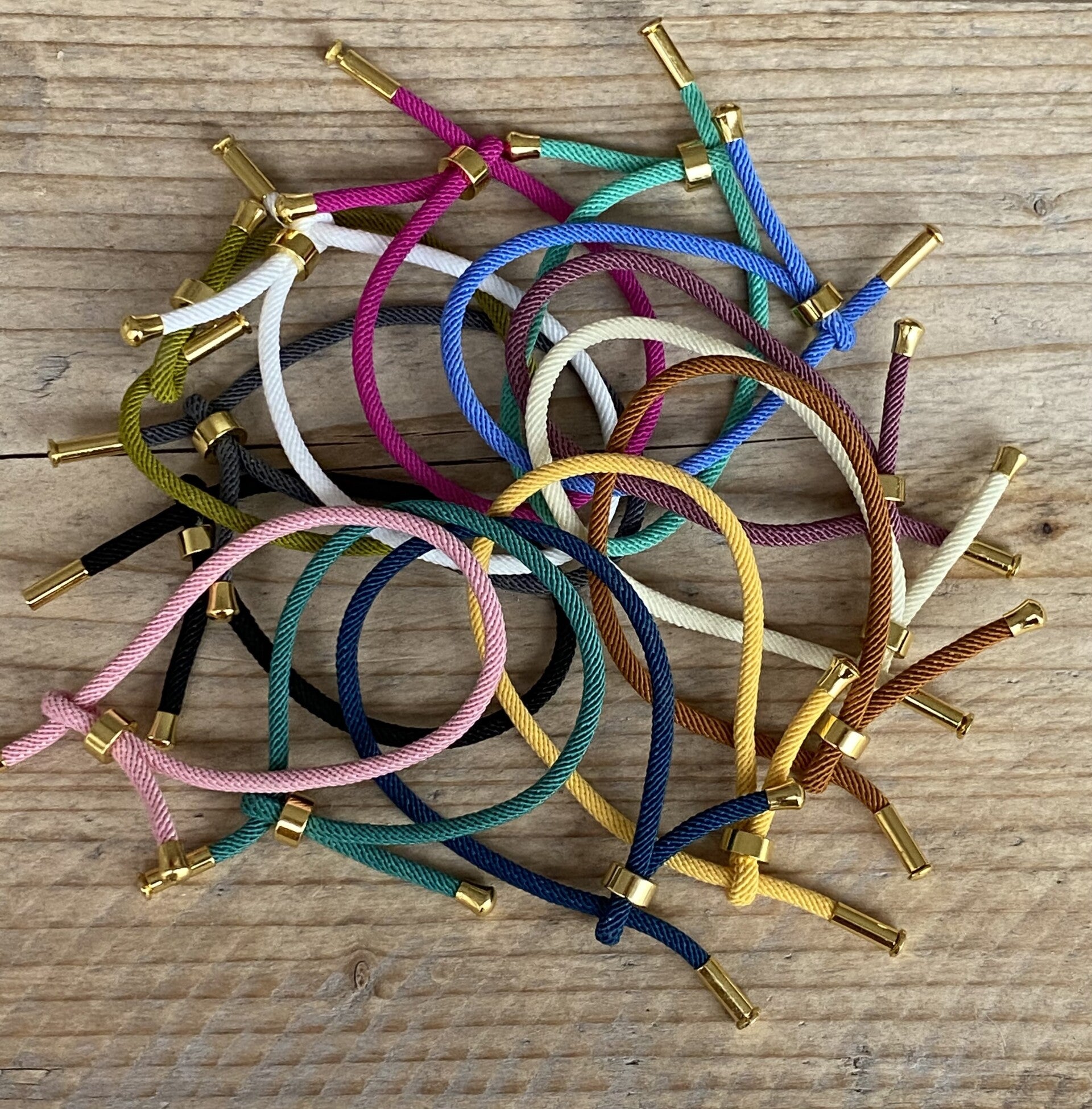 Deze armbandjes passen altijd. Zijn op maat verstelbaar. Jij of je klant hoeft alleen maar de kleur uit te kiezen en welke soort kraal / letter of letters er op mogen. En thats it😊. Ze kunnen met meerdere kleuren bandjes ook afwisselen. Want de initial letters schuif je er zo af en weer op.
