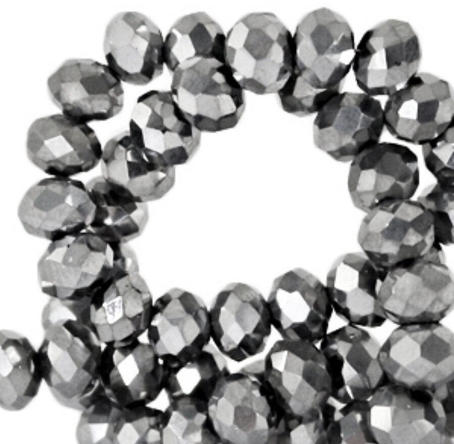 Facet kralen 4x3mm grey metallic pearl shine coating