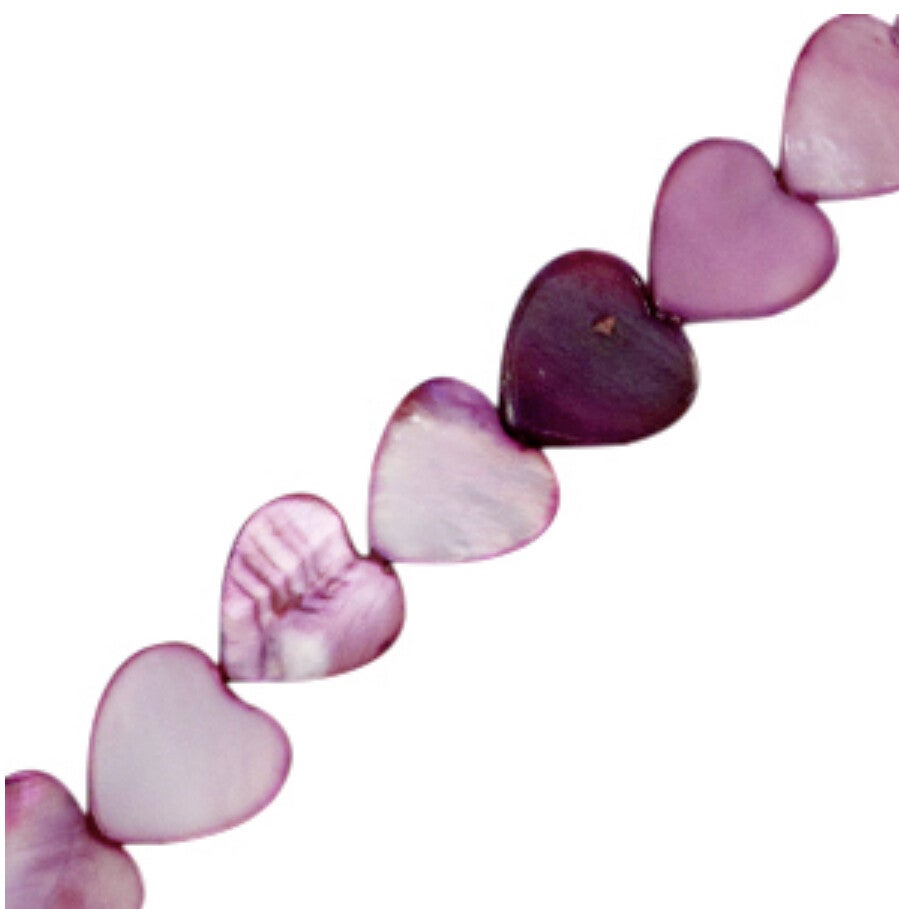 Schelp kralen heart purple 8mm. Rijggat 0,8mm.