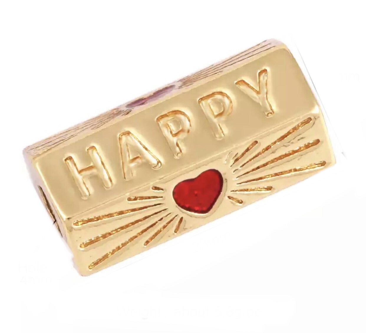 Message beads Happy Red / Gold. 23x11mm. Rijggat 4mm.