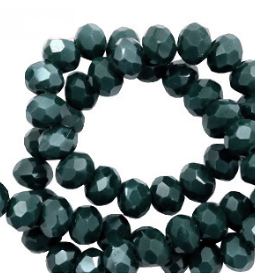 Facet kralen top quality disc 6x4 mm Deep green-pearl shine coating