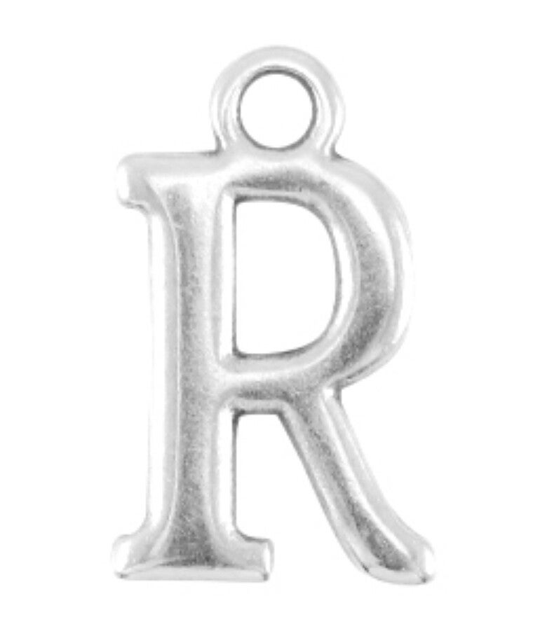 DQ ( designer quality) metaal letter hanger R zilver. Nikkelvrij 15x9 mm