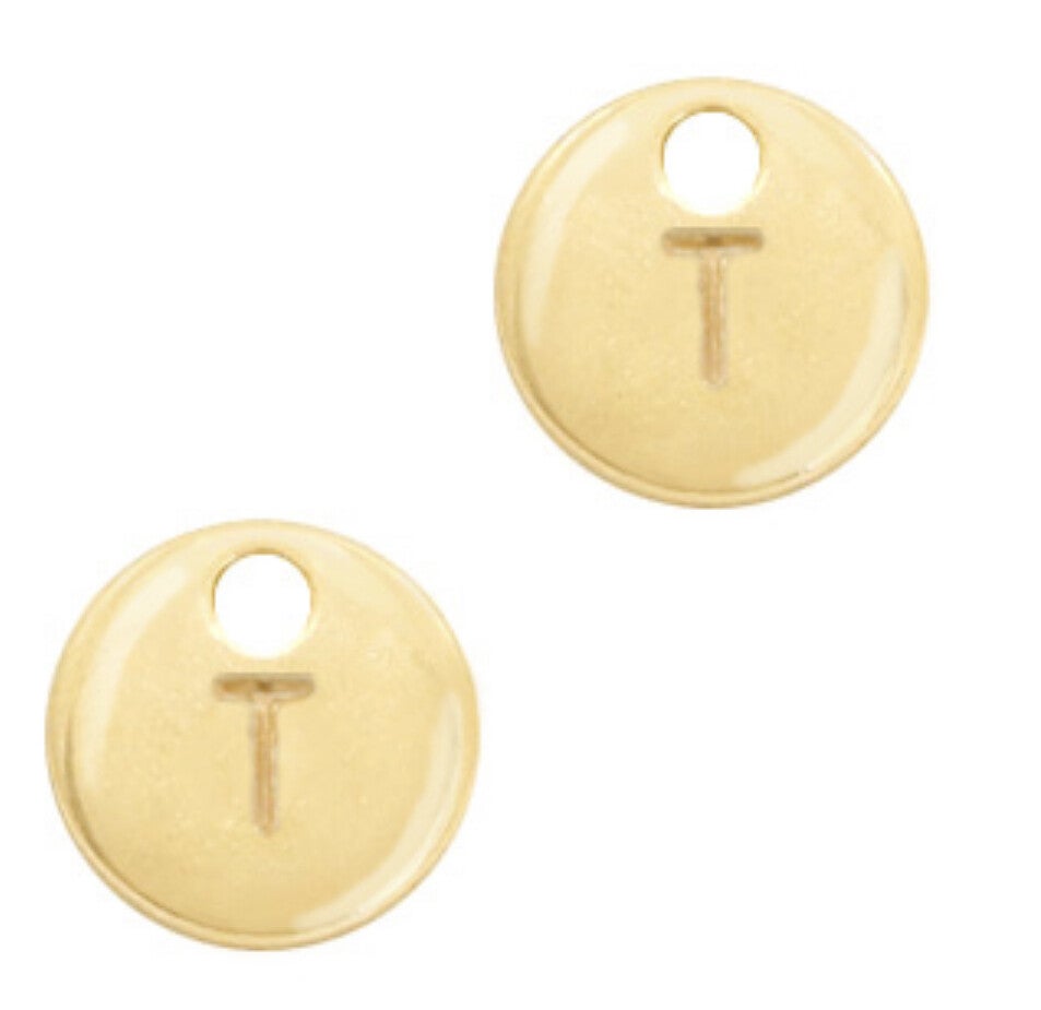 Metaal bedel initial letter T goud nikkelvrij 10mm.