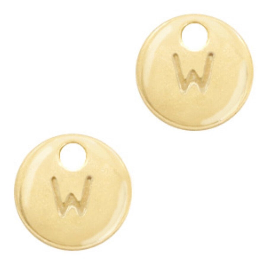 Metaal bedel initial letter W goud nikkelvrij 10mm.