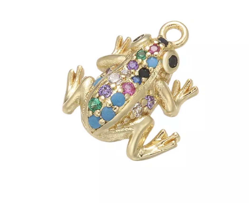 Bedel / hanger metaal nikkelvrij. Zirkonia kikker goud.