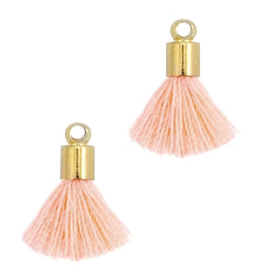 Ibiza style mini kwastjes goud- neon peach met eindkap