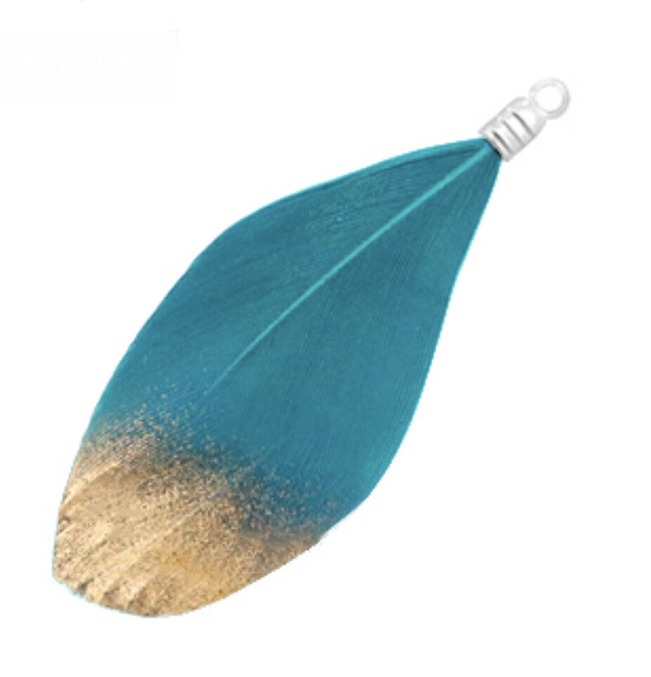 Ontwerp de leukste zomerse sieraden met een Bohemian touch door middel van deze kleurrijke veertjes in de kleur deep teal blue. De veren dip-dye gold zijn heel gemakkelijk te verwerken door gebruik te maken van bijvoorbeeld oorbel onderdelen van DQ metaal of jasseron voor een hippe ketting. Vul nu je collectie aan met deze super leuke veertjes