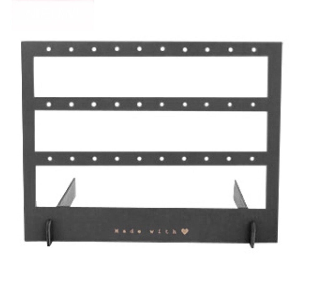 Oorbellen display 3 rijen. Made with 💕. Black. Hout