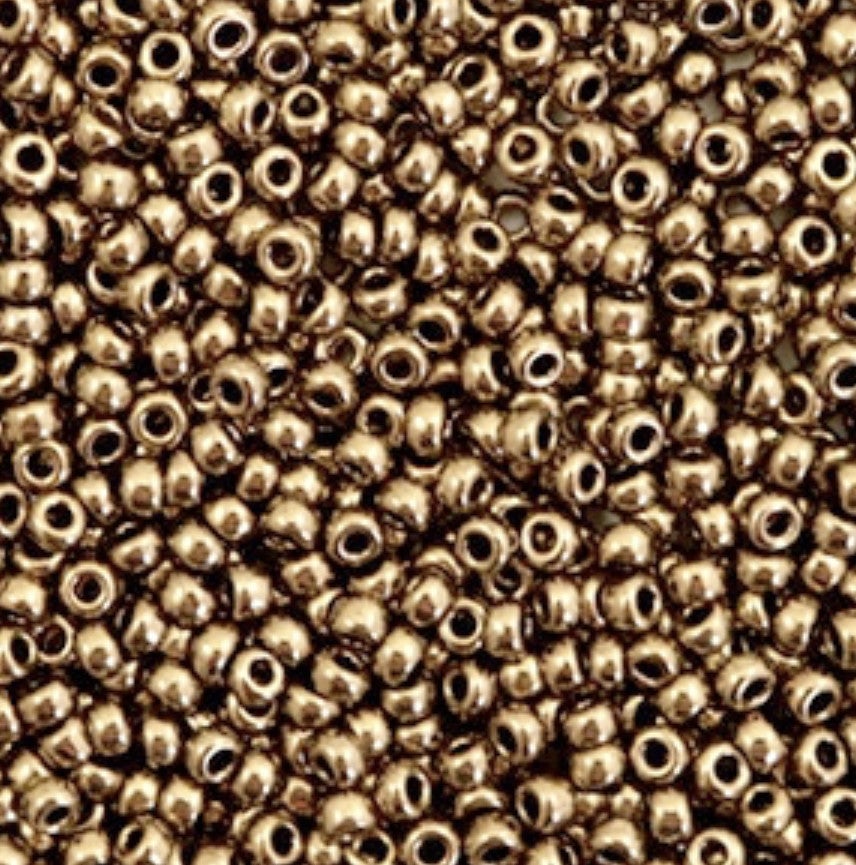 Miyuki 11/0 rocailles 2mm. rocailles van hoogwaardige kwaliteit. Miyuki staat voor kwaliteit met een luxe uitstraling. Metallic dark bronze 11-457 is één van de vele kleuren uit ons assortiment. Materiaal: glas. Verpakt per 5 gram (ca. 550 stuks).