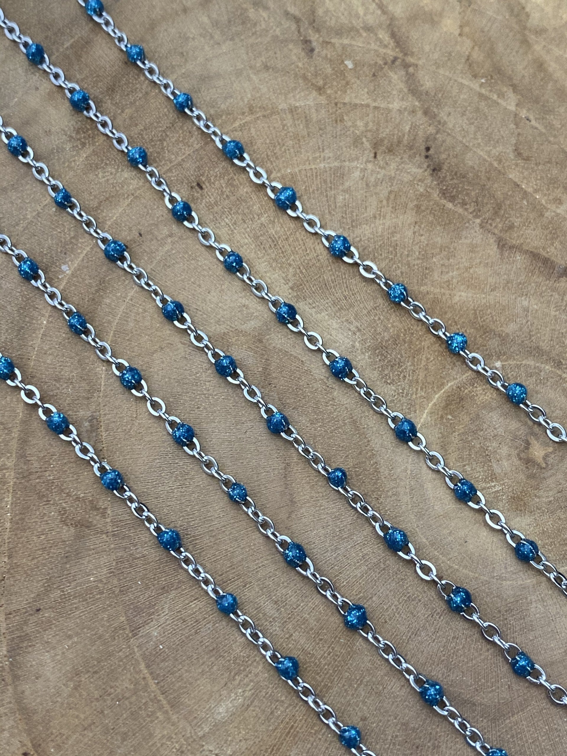 Stainless steel bolletjes jasseron sparkle blue - - zilver.